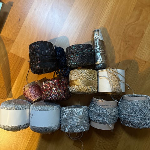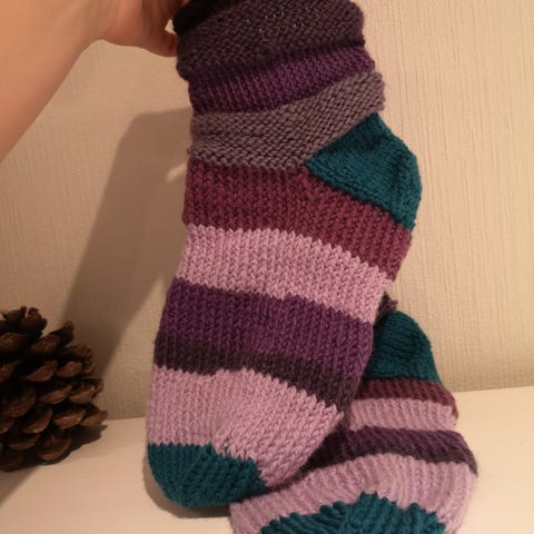 Håndlaget sokker av restegarn. Str 38-39. Kan sendes.