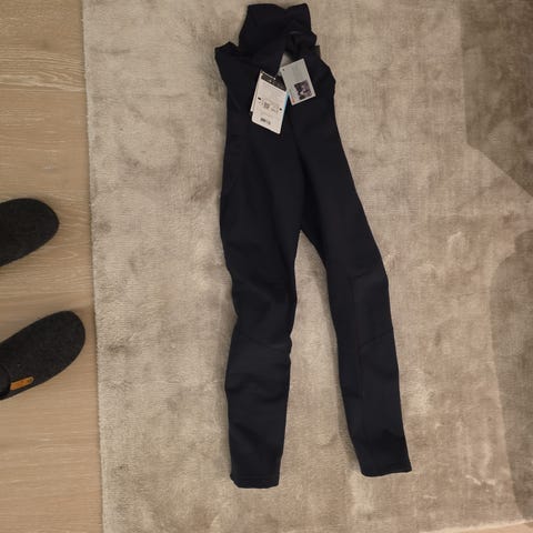 Noen slitte partier på øverste del, samt et lite hull oppe på ryggen, se foto, men buksen kan fint brukes.