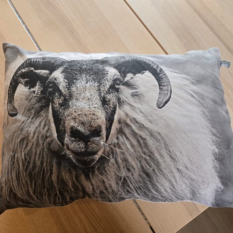 Pute Lama 50 x 50 cm sølvmønster på hvit bunn 100 % bomull.