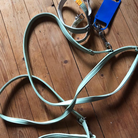 Er opprinnelig kjøpt til en katt, men ble for liten. Er derfor aldri brukt, merkelappen henger fortsatt på.