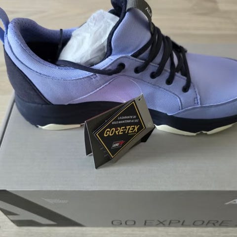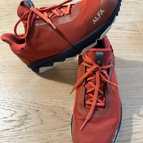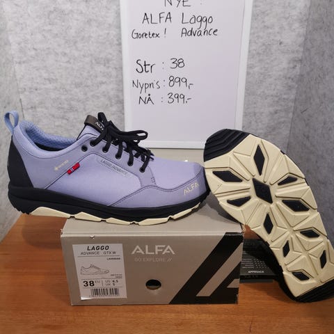 Selger et par Alfa Laggo Advance sko i blått stoff, herrestørrelse 40. Lite og ubetydelig brukt. Meget gode sko men pga operasjon passer de ikke lenger. Kan sendes.
