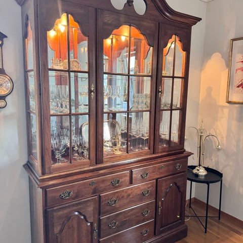 Klassisk vitrineskap selges grunnest flytting fra enebolig til leilighet. Skapet har 5 hyller og glass i både front og side.
