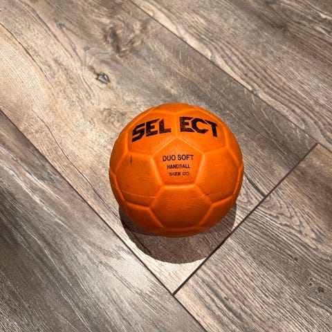 Select Duo Soft håndball i oransje farge. Håndballen er designet for håndballspill og har en myk overflate. Brukt, men i god stand. Navn og telefon i tusj på ballen som vil tusjes over før vi sender den.