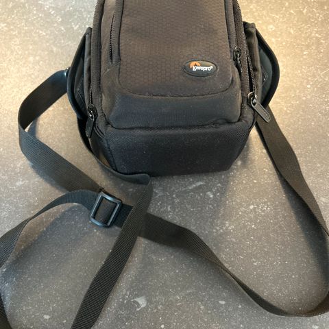 Fotoveske i svart farge. Vesken har justerbar skulderrem og justerbare rom for oppbevaring. Materialet er slitesterkt og egnet for daglig bruk.