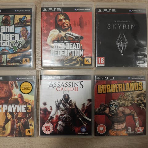 Pakke med 15 Playstation 3-spill, inkludert titler som Assassin's Creed Brotherhood, Bioshock 2, Dead Island, Uncharted 2 og Little Big Planet 2. Spillene dekker flere sjangere og har aldersgrenser fra 3 år til 18 år. Spillene leveres i original emballasje.
