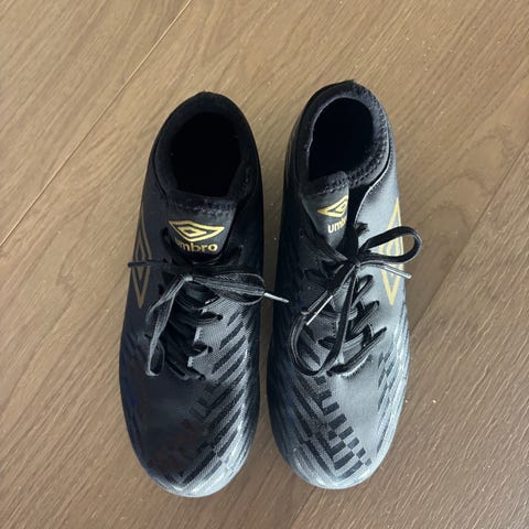 Umbro fotballsko i svart farge med knotter. Skoene har borrelås og snøring for god passform. Str. 32.