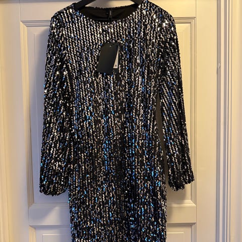 Elegant festkjole i sort og rød jacquard fra Vero Moda, kjolen er så og si helt ny, den er kun prøvd på flere ganger, og brukt i noen timer.