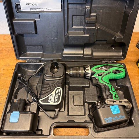 Jeg selger en Hitachi drill med 2 st batterierni ett pakkepris er i god stand