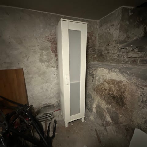 3 fine og solide skap. Ett med glassdør. Litt tape på det ene skapet, men det kan skrapes bort. Gis bort pga flytting. Befinner seg på Veitvet.