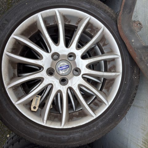 To gode dekk med ca 6 mm mønster, de andre to har litt mønster igjen men bør nok byttes.