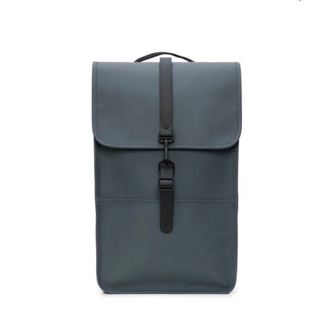 Rains ryggsekk laget av kunstlær, designet for unisex bruk. Sekken har et minimalistisk utseende med justerbare skulderstropper og en frontklaff med spenne. Passer til daglig bruk og lett oppbevaring.