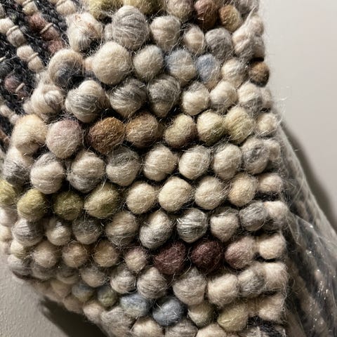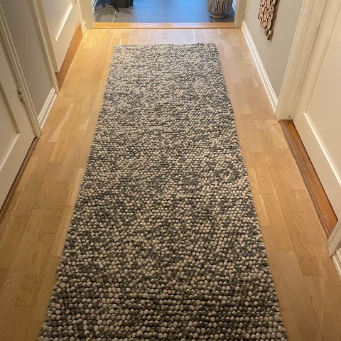 🌸Selger mitt fine, myke kvalitetsteppe fra Riverstone i 100% ull. 160 cm, i fargen multi cobber (mest toner av off white, beige, brun, grønnblå)