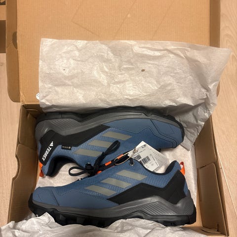 Skoene er designet for fotturer med solid yttersåle for godt grep og slitesterkt materiale for økt holdbarhet. De er lite brukt, kun slitt på tuppen av skolissene. Små i størrelsen.