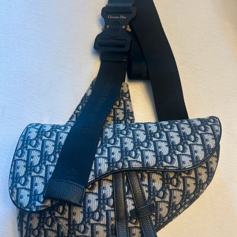 Selger/bytter en Dior Saddle Bag i blå Oblique Jacquard med tilhørende industrial strap. En ikonisk modell fra Dior med det karakteristiske Saddle-designet. Kom med forslag til evt. bytte😊