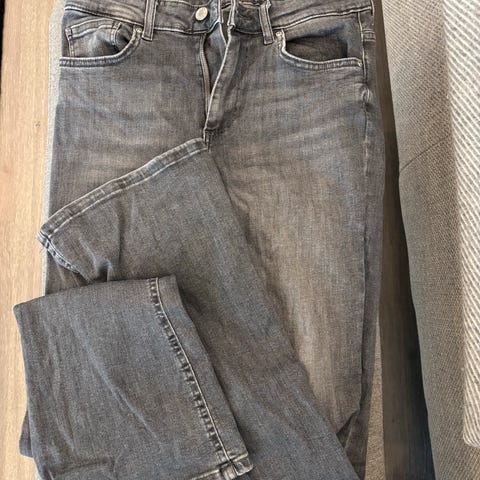 ONLY bukser i grå farge laget av bomull. Størrelse L med midjemål W30. Designet for damer.