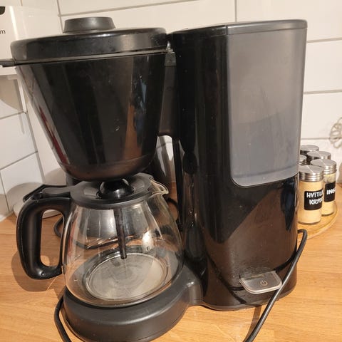 Philips kaffetrakter i hvit farge. Kommer med glasskanne og standard kapasitet for hjemmebruk.