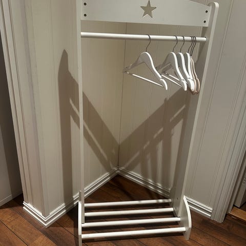 Trofast IKEA oppbevaring i hvit farge. Designet for oppbevaring og organisering av leker og tilbehør. Skuffer følger ikke med. H 145 cm, d 30 cm og bredde 46 cm.