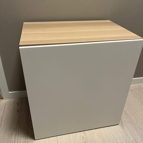 Fint brukt Bestå skap med 3 stk hylleplater og dører selges for 1100kr. Hvitbeiset eikemønster på skapet, Lappviken dør i hvitbeiset eikemønster og en i hvit. Må hentes.