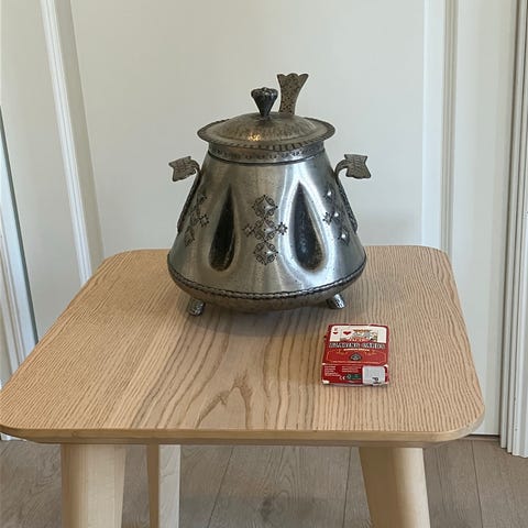 Esken er hel, men litt slitt i kantene på lokket (se bilder)