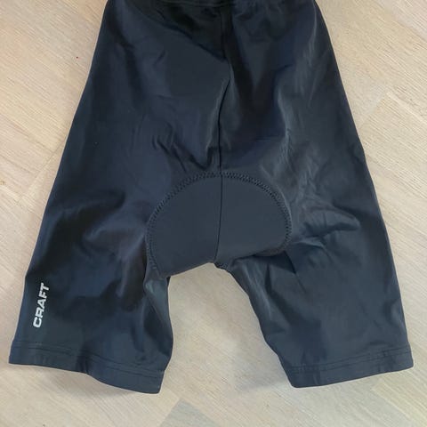 Svart sykkelshorts fra SATS Sport med hvit tekst på sidene «Keep Moving».