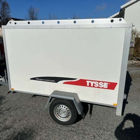 Selger Tyssen Henger som er liten å kul , med lukket kasse kjekk liten sak kan frakte ting /tang med er 4 fastmonterte jekkepunkter for sikring av last .De er den vasket og Bonet , dekkene er meget bra alt virker Denne hengeren er meget Pen utvendigog og innvendig. Da er den klar for nye eventyr ,