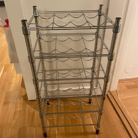 Praktisk, vellaget vinhylle gis bort. Hyllen rommer anslagsvis 60 flasker.