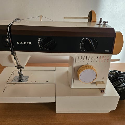 Janome skyline s7, brukt max 3-4 timer. Ekstra trådholder til 2 sneller montert. Alt utsyr og trekk følger med. Ca 4 år garanti hos Stoffdronning følger med.