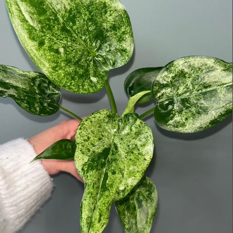 Coleus stueplante med flerfargede blader i nyanser av grønt, gult og lilla. Planten er i en hvit potte og egnet som innendørs dekorasjon.selges uten potte.