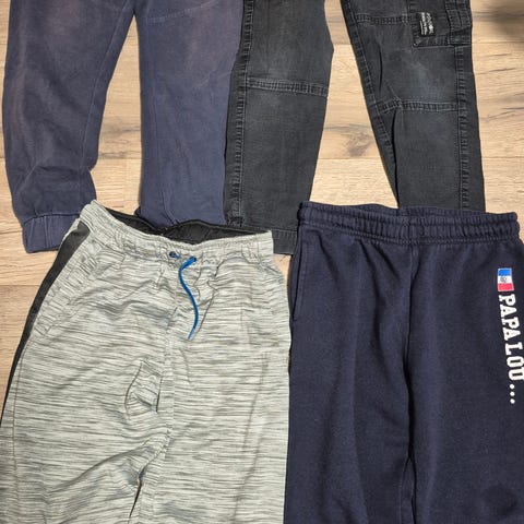 Buksen har noen bruksmerker som er vist på bildet. Pakken selges samlet for 150 kr.