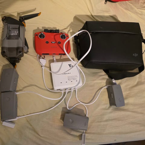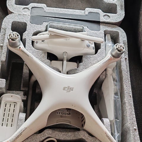 Den har ingen defekter, riper eller støtskader. Dronen er helt ny, kun brukt to ganger. Batteriene er nye, og de fleste delene er ubrukte, som vist på bildene. Alt på bildet er inkludert i tilbudet.