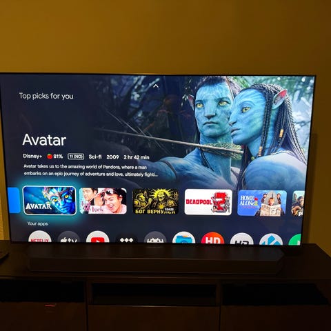 Super Kunst TV, inkludert ramme (lys eik) og veggfeste. Kan også brukes til gaming (144 hz). QLED TV.