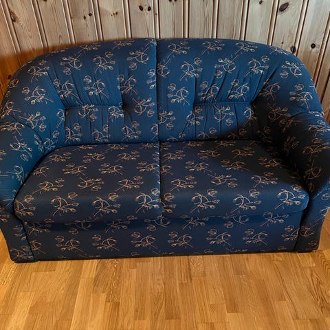 Nesten ny sovesofa 2-seter i grønn farge laget av stoff. Denne kompakte sovesofaen kan enkelt konverteres til en seng, noe som gjør den ideell for små rom eller gjesterom. Den har en robust konstruksjon og et moderne design som passer inn i de fleste interiørstiler.