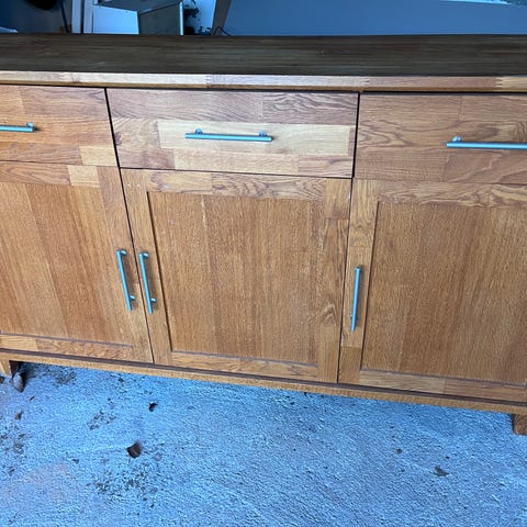 Liatorp skjenk og tv benk gis bort. Dekorfolie på toppen. Noe har vi begynt å t av da vi tenkte å ha den hvit som i utgangspunktet. Innhold følger ikke med. Mål har jeg ikke tatt. Er fine begge to. Bare å hente. Må være to personer å hente da møblene er tunge. Møblene hentes i Orstad vn 251. 4353 Klepp stasjon. Ring for avtale om henting: 95726334