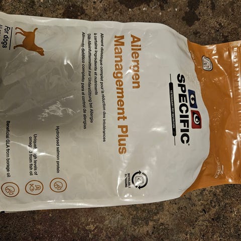 Selges da hunden vår har allergi. Ca 1 skål tatt fra posen!