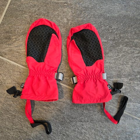 Gode votter fra Jotunheim i str. 3-4 år. Myke inni og mulighet for å stramme slik at de sitter bedre på.