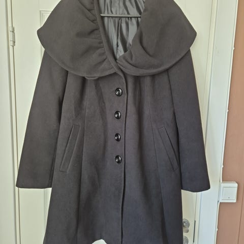 Flott kåpe fra KappAhl. Sort fløyelsaktig . Knapp øverst og hemper nedover for lukking. Som ny. Str 38-40.