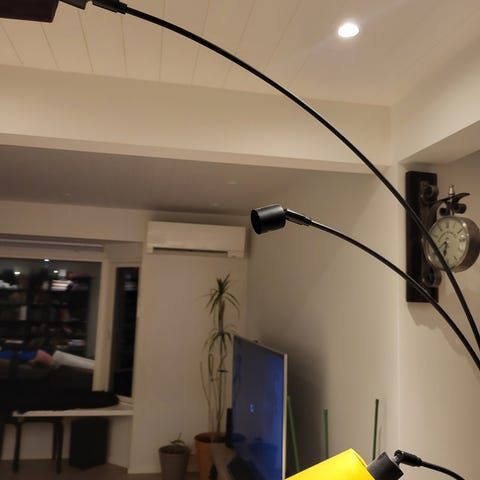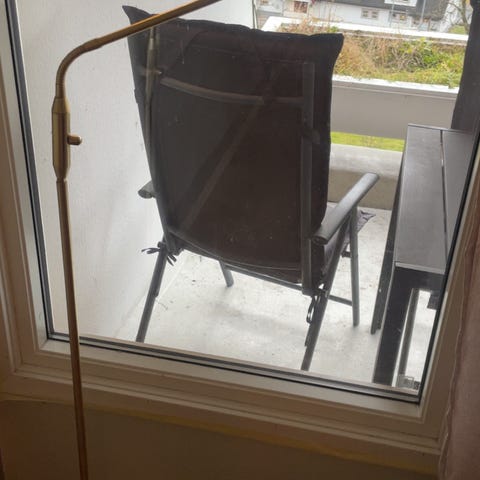 Stålampe for lyspære med stor sokkel gis bort. Det var opprinnelig en glasskuppel på den. Liten, hvit lampeskjerm kan følge med. Slås på med knapp i ledningen. Hentes på Ingieråsen.