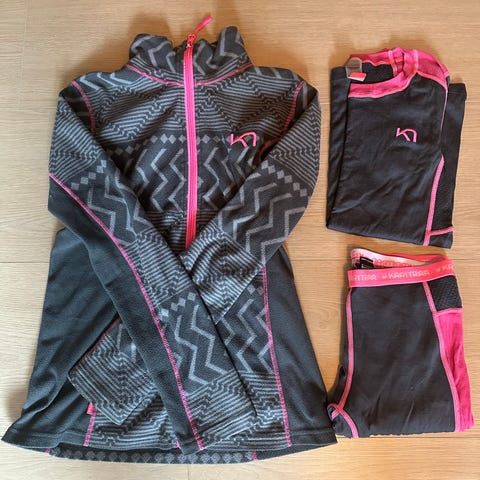 treningssinglet i størrelse XS. Singlet er laget for sport og trening, med farger i rosa og oransje. 100 prosent merinoull. Brukt et par ganger, men bare blitt liggende i skapet. Litt krøllete, men ingen synlige tegn til bruk.
