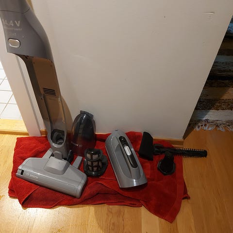 Bosch Ready'y Serie 2 støvsuger med 14,4V batteri. Designet for enkel bruk og effektiv rengjøring. Passer til daglig rengjøring i hjemmet.