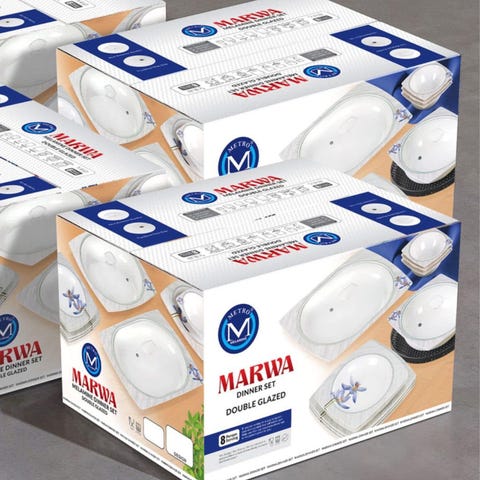 Selger et middag og kaffe/te servise i porselen for 8 personer. Dette serviset er kjøpt i Pakistan i 2012, men er kun brukt en gang. Ingen synlige merker. Kun stått i et skap i alle årene. Her får du 8 middagstallerken, 8 frokosttallerken, 2 terriner, en stor skål, 2 serveringsfat, salt og pepperbøsse, 8 asjetter, 8 dessertskåler, 8 kaffe/te kopper med fat, 1 melkemugge, 1 sukkerskål og en kaffe/tekanne. Pris kan diskuteres ved hurtig avgjørelse:)