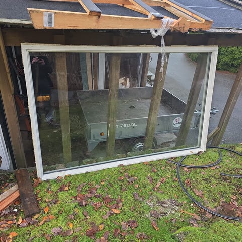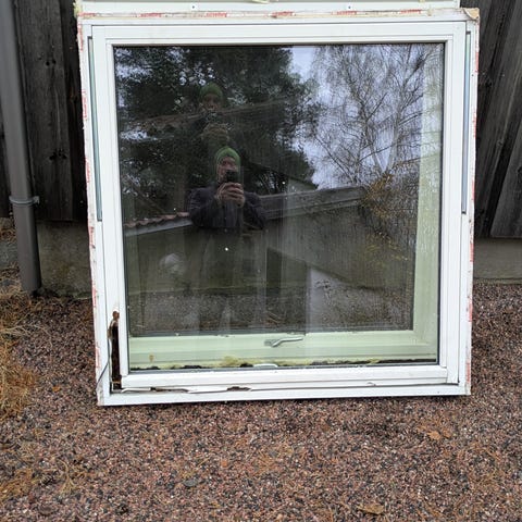 Sprosser 9stk 102 cm x 91,5cm. Vinduer er fra 1976. vet ikke hvor gamle sprossene er, men di virker ganske bra.