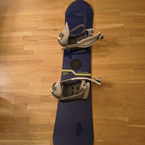 Godt brukt snowboard. Hele og pene bindinger, selve fjøla trenger litt kjærlighet. Brettet er 135cm