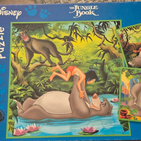 Selger puslespill: Ravensburger Jungelboken puslespill med 1000 brikker. Kun satt sammen én gang og tatt godt vare på :) Nypris hos Ark er 399 kr. Hentes hos mine foreldre i Tromsø eller sendes mot frakt