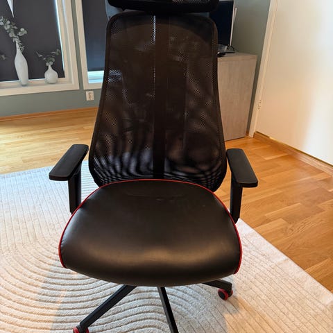 En pent brukt kontorstol fra Jysk. Kan enkelt justere høyde og ryggen på den. Ingenting galt med den.