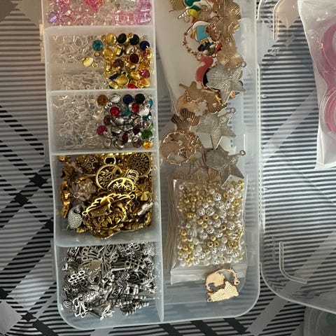 Perler og charms til smykkelaging.