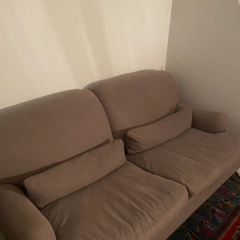 Flott gammel sofa med fjær i sitteputene. Utrolig behagelig å sitte og ligge i.