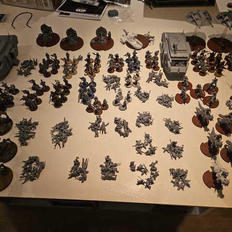 Det følger også med originalkorta til alle unitsa, med oppgraderingene. Dei har alltid vore trygt i ei plastboks, og dei største korta har sleeves. Det følger og med eit sett range rulers og movement rulers.