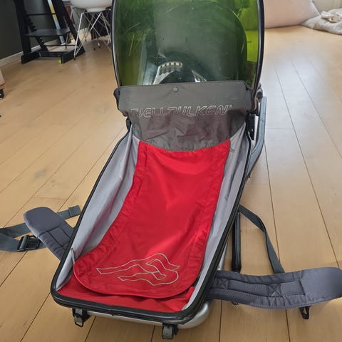 Selger en pent brukt Fjellpulken. Noen riper i skjermen, ellers komplett med sele og drag. Ingen feil.