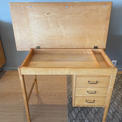 Blitt brukt som bord for oppbevaring av pyntegjenstander