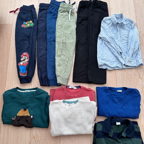Fin klespakke med bukser og en genser for gutt i størrelse 122 (120 på 2 av jeansene).